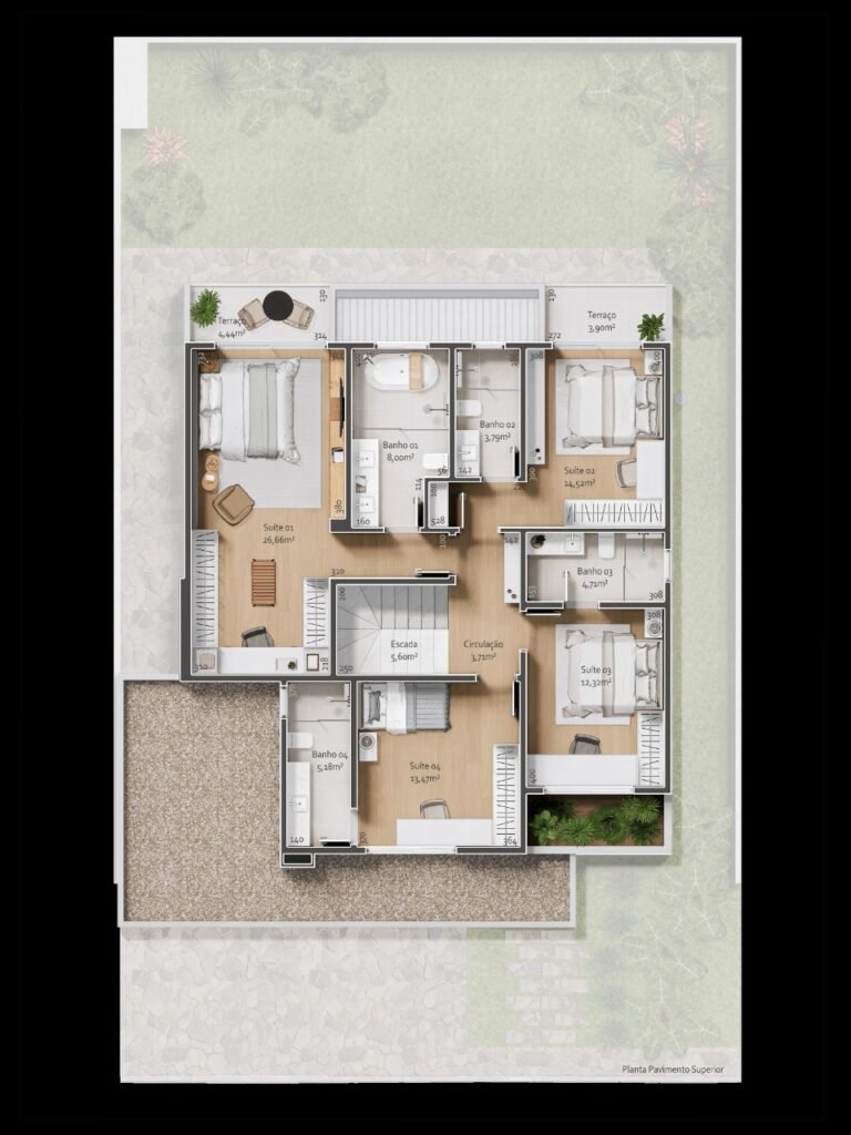 construída em um terreno de 350m² de área privativa, tudo isso no Condomínio mais charmoso de Santa Felicidade.
